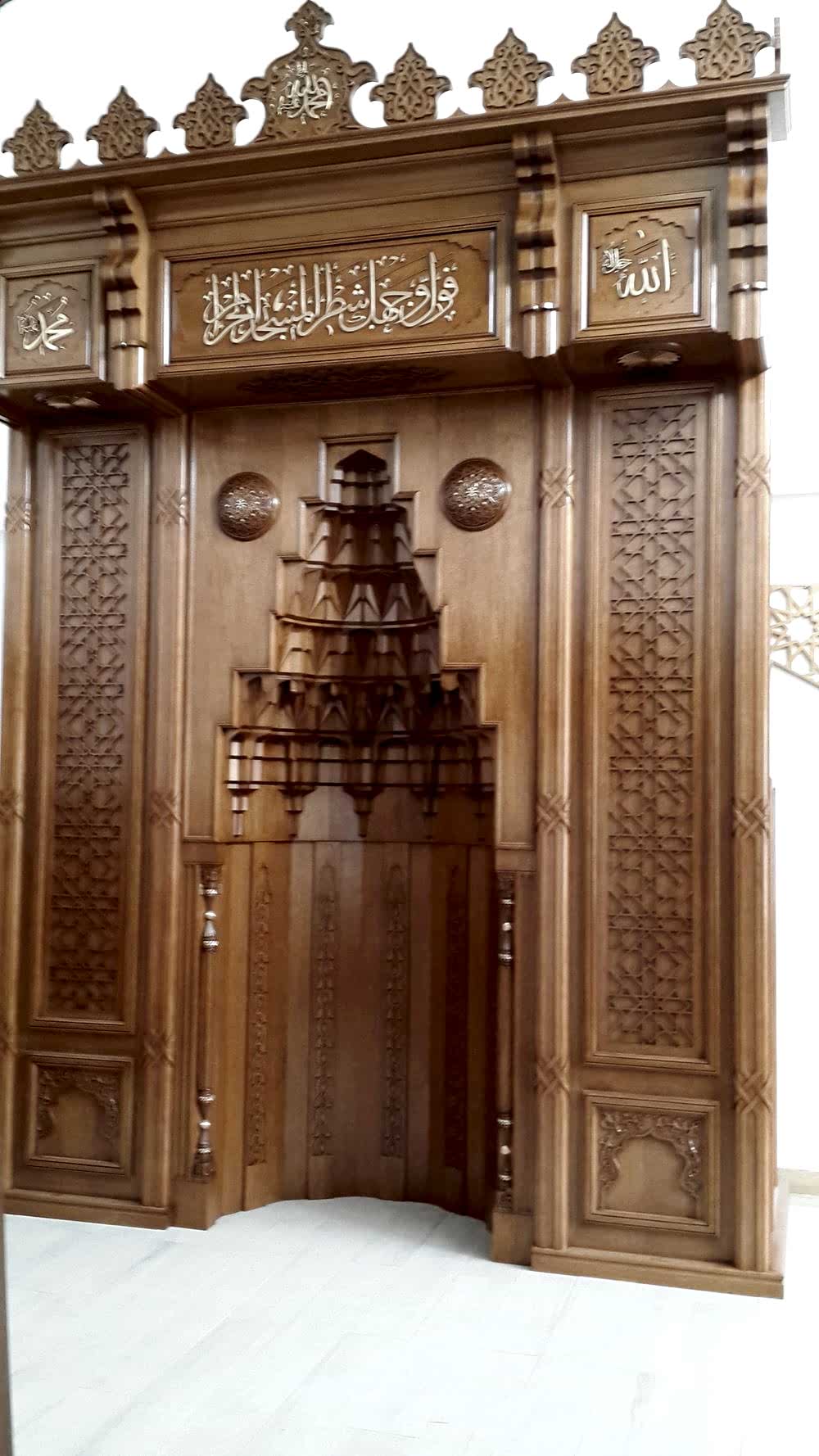 Dantel Motifli Cami Mihrabı, geleneksel dantel motiflerinin zarif işçiliğiyle cami dekorasyonunuza estetik bir zenginlik katar. İnce detaylarla bezenmiş bu mihrap, ibadet alanınıza sanatsal bir dokunuş ve manevi bir derinlik kazandırır.
